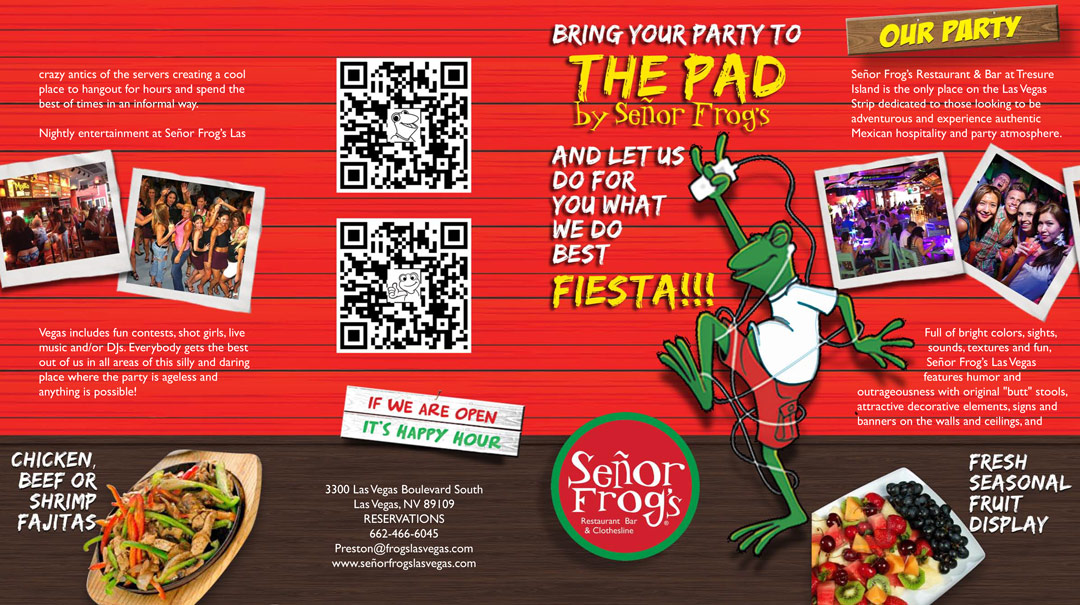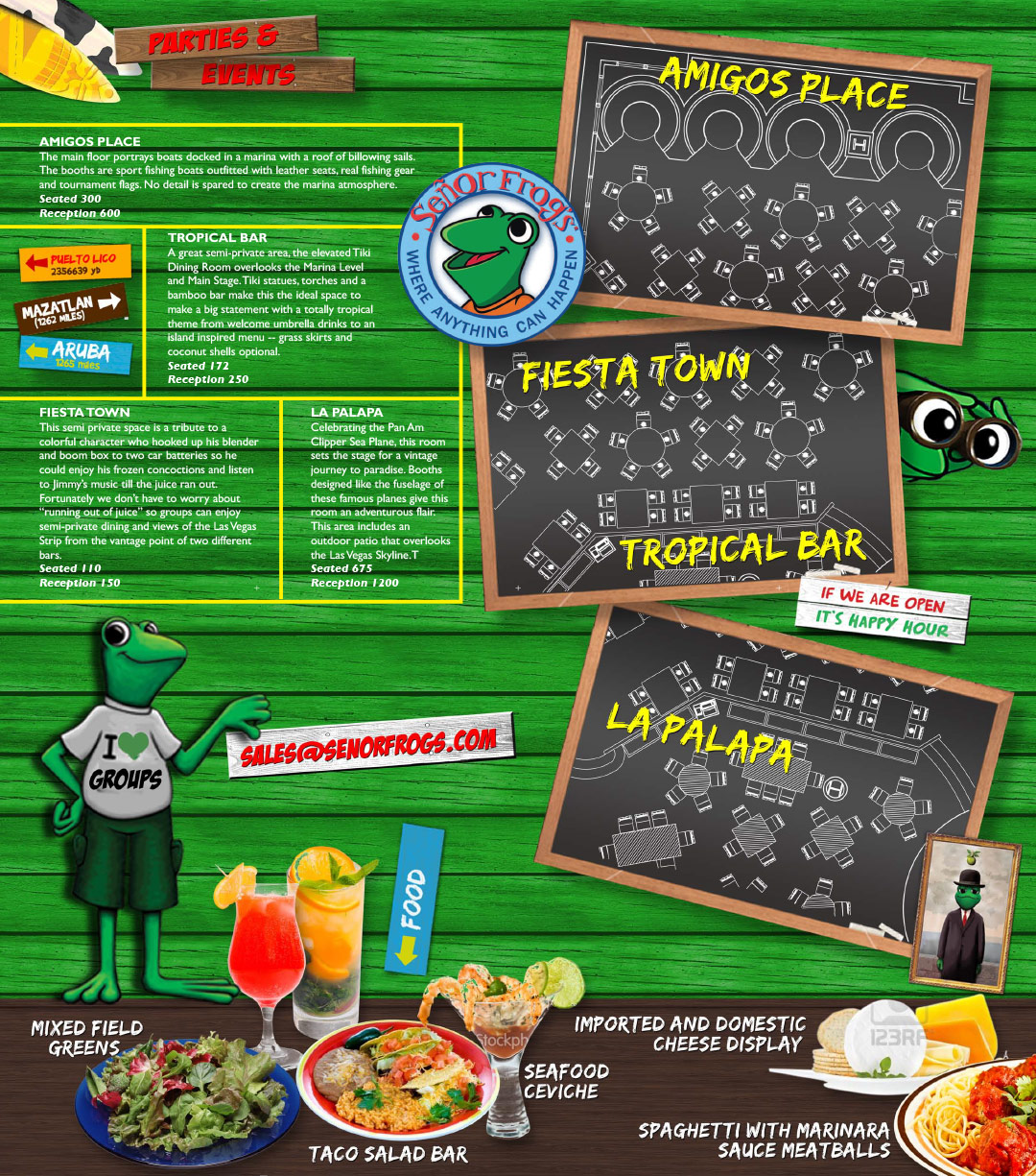SEñOR FROGSCOLLATERAL MATERIAL ART +TRIFOLD – OUTSIDE+CAR DECAL+POSTCARD+TETRA-GATEFOLD FRONT & BACK+TETRA-GATEFOLD INSIDE+MENU+++FOLDER EXTERIOR+TRIFOLD – INSIDE+INSERT+TETRA-GATEFOLD CENTRAL+++eBLAST+FOLDER INTERIOR Prev Next