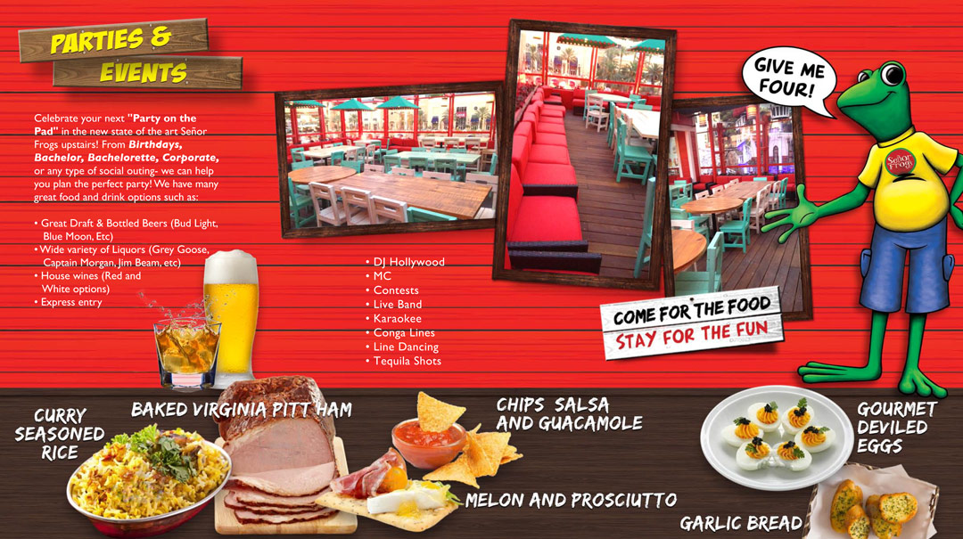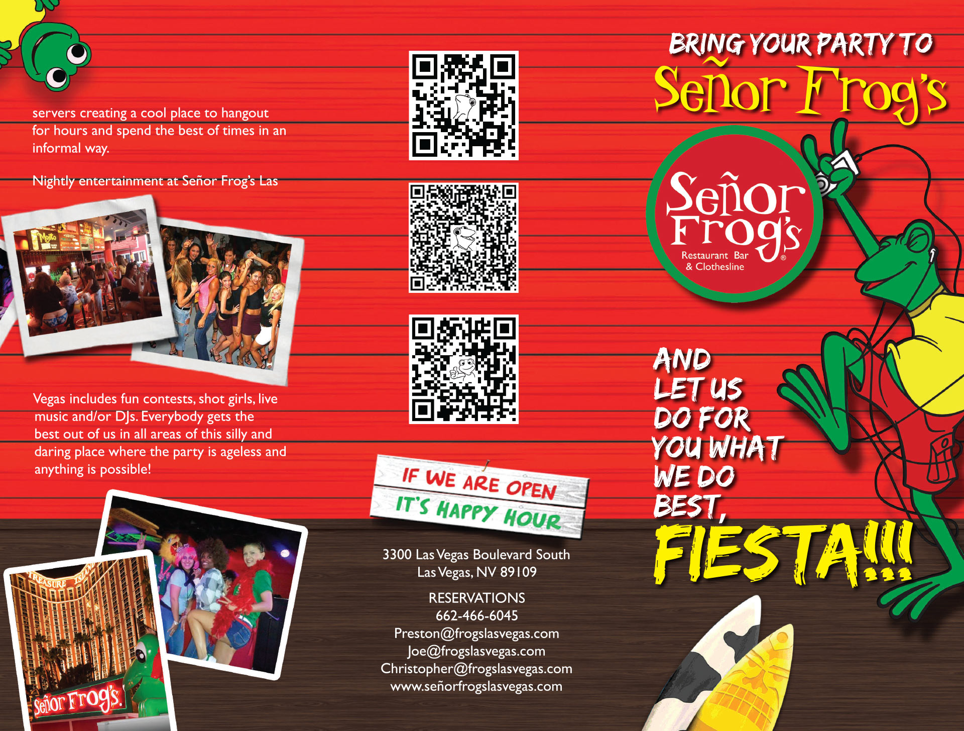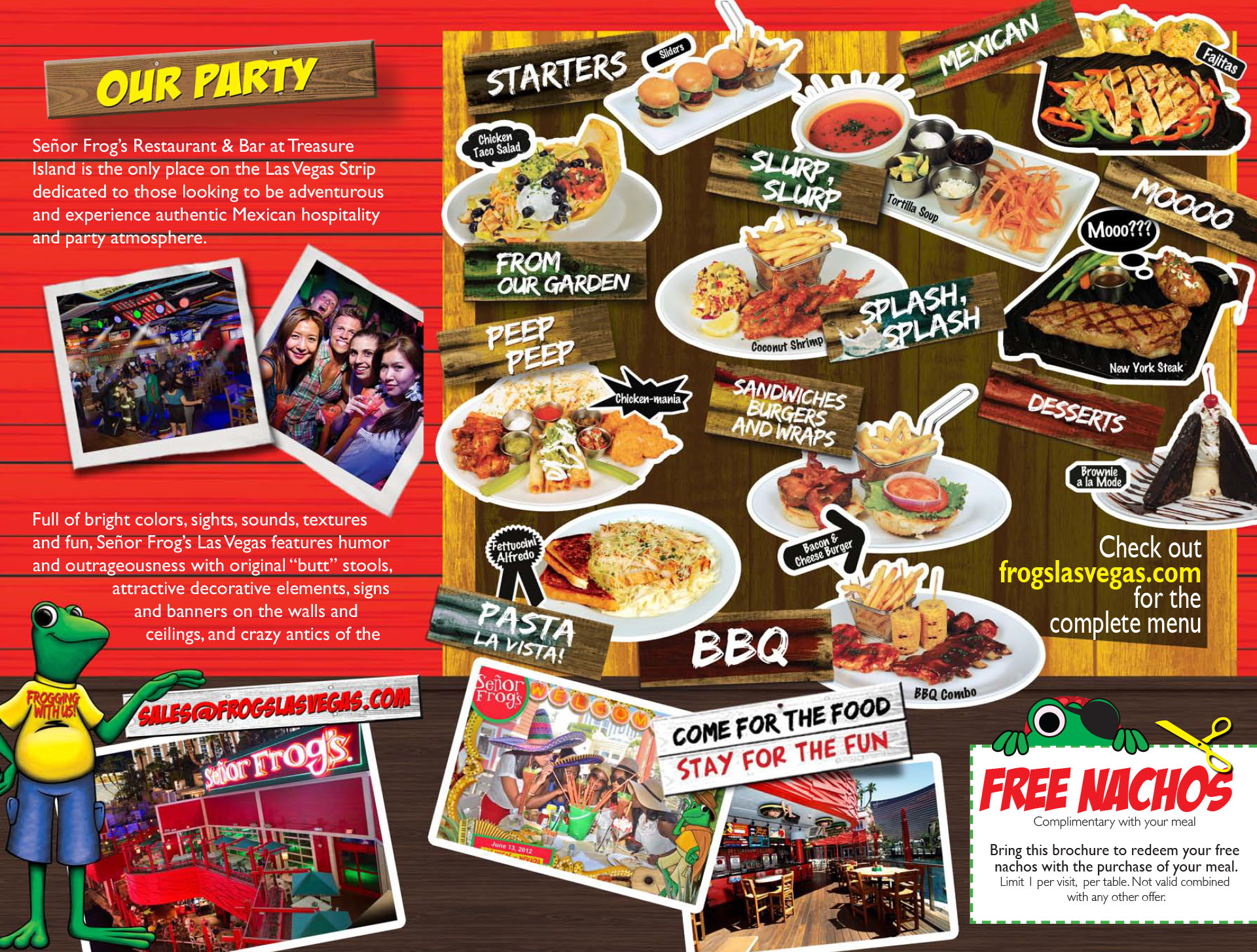 SEñOR FROGSCOLLATERAL MATERIAL ART +TRIFOLD – OUTSIDE+CAR DECAL+POSTCARD+TETRA-GATEFOLD FRONT & BACK+TETRA-GATEFOLD INSIDE+MENU+++FOLDER EXTERIOR+TRIFOLD – INSIDE+INSERT+TETRA-GATEFOLD CENTRAL+++eBLAST+FOLDER INTERIOR Prev Next